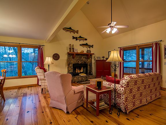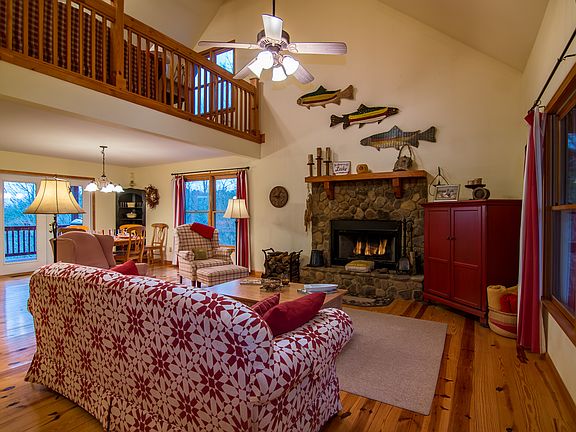 Immaculately maintained metal-roofed cabin with lake and mountain views! This cabin is located within minutes to boating, fishing and swimming at one of Georgia's best kept secrets....the beautiful Carters Lake! Great room features a beautiful stone fireplace, open vaulted ceilings, gorgeous wood floors and lots of light. Spacious kitchen with breakfast bar and large dining space that opens to a super covered porch overlooking the beautiful views. The cabin offers lots of room for a large or growing family, with three bedrooms and three full baths plus a large open loft and a bonus rec room on the terrace level. Plenty of storage including a one car garage, perfect for storing all of your lake toys! Perfect for full time home, vacation home or vacation rental investment! Most furniture is negotiable via separate bill of sale.