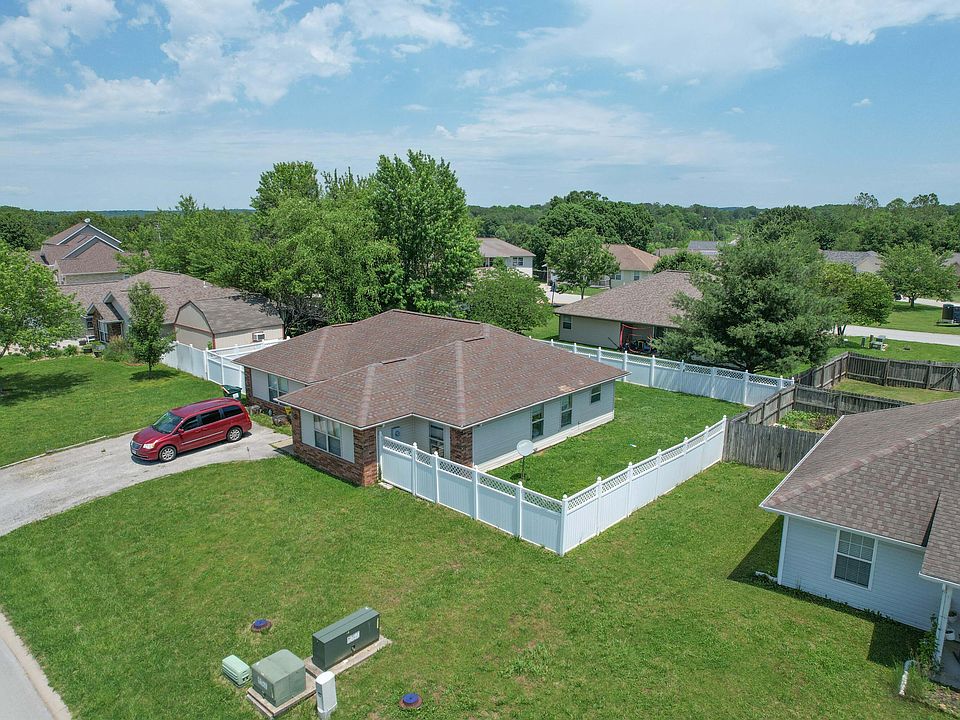 HOme has split floor plan, large eat in kitchen and fenced yard