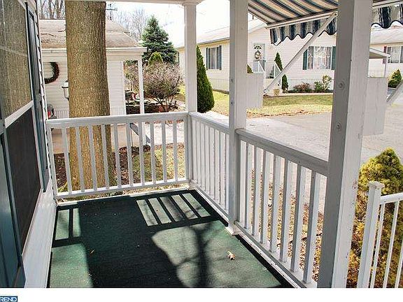 *** "Private Picturesque Setting!!" *** Spacious 2 Bedroom, 2 Full Bath Ranch Home nestled in Little Farm Estates, a Wonderful 55+ Community that is the "Hidden Gem" of Bucks County! Welcoming Covered Front Porch! Generous Room Sizes, Cathedral Ceilings, Fresh Paint, Neutral D~~cor & "NEW" Carpeting Thru-Out! Large Living Room accented with BIG Beautiful Window! Formal Dining Room! Huge "Bright-N-Sunny" Eat-In Kitchen equipped with Plenty of Cabinetry, Granite Counter Tops, Island + Breakfast Room with Skylights & "NEW" Pergo Hardwood Floors! Master Suite offers Vaulted Ceilings, Large "Walk-In" Closet & "Custom Built-In" Closets Too + Large Master Bath! Spacious 2nd Bedroom with Vaulted Ceilings! The Sunporch is a Perfect Place to Relax & spend those "lazy" days! "Over-Sized" Garage! "NEW" Roof! Gas Heat! Central-Air! 200 Amp. Electrical Service! It's a Great Place to Call "HOME"!