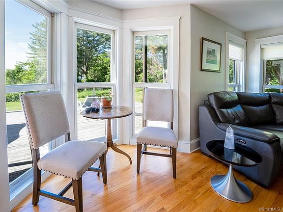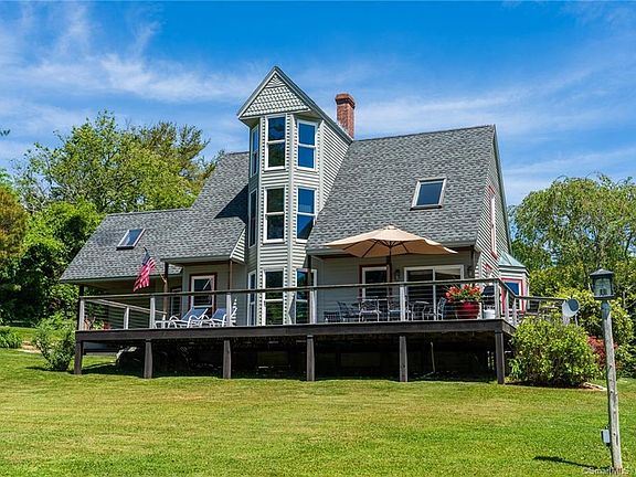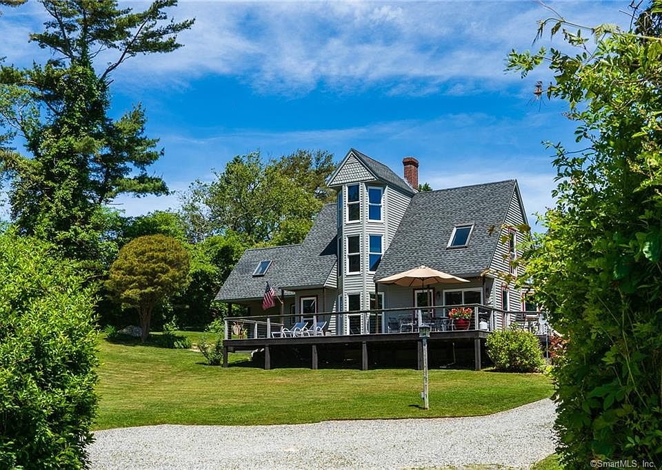 Noank contemporary home within close proximity to Noank village and all the nautical amenities this Noank community offers. This unique home buying opportunity allows one to enjoy all the amenities Noank and Mystic offers while returning to your own private oasis. Enjoy your expansive 37X18 foot mahogany deck as you sip savor your favorite beverage while taking in the evening sunset. The open floor plan on the main level glistens with pristine hardwood flooring leading seamlessly to the kitchen, living and dining rooms. The kitchen appliances include a Kenmore dishwasher, 5 burner Frigidaire propane cooktop with center griddle and gas oven. The LG refrigerator, GE microwave, and kitchen sink are all stainless steel. The living room area measures 18 feet long and complimented with a propane fireplace with glass enclosure and pebble stone base. Main floor includes full bathroom with glass enclosed shower, granite counters and tile flooring. Upper floor includes 3 bedrooms and an observation loft with water views. This modern home is gracefully set on a .36 private land parcel with water views and within close proximity to Spicer Marina. Recreational activities are at your doorstep as you enjoy Esker Point Beach, Mystic Seaport, Mystic Aquarium and two of the world's largest casinos. Abundant restaurant choices, outdoor concert venues, and nautical excursions on the open waters make this property's location a gem. Home conveniently located between New York and Boston.