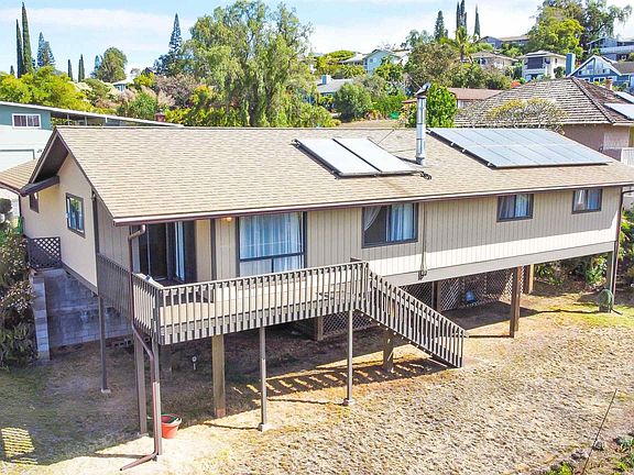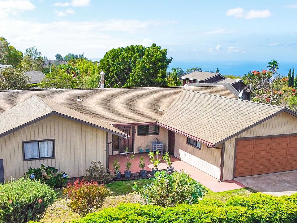 Highly sought after beautiful Kula Kai neighborhood in Upcountry Maui. This area of Kula offers the cool climate yet just minutes away from all the wonderful amenities located at Kulamalu Town Center, Food Trucks, Long's, Farmer's Market, Marlo's, NAPA Auto Parts and many more. This property offers a single-level floor plan that includes four bedrooms with two full baths, a small ocean view, extra-large washroom and a walk-in kitchen pantry. There is a fireplace for the colder Kula nights, and plenty of storage room for your gardening tools beneath the house. Two-car garage with garage door. Large property offers mature fruit trees including Coffee, Lemon, Tangerine, Apple, Papaya, Peach, Guava, Avocado, Loquat and others. There are also Protea, Hydrangea and more lovely flowers; perfect for gardening and enjoying the beautiful Haleakala views. There are 6 large PV panels that are owned with a solar water heater. Call today to schedule a showing of this lovely home! Easy to see on short notice!