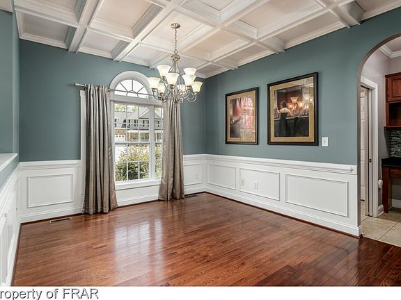 Tucked in the woods of the gated community of Carolina lakes - this brick 3 bedroom home has an open floor plan with upgraded hardwood floors throughout the main living areas & bedrooms. The master bath has a large tiled shower and jetted tub & 2 closets. Upstairs offer an additional bonus room for an extra family area, office or play room. The kitchen has granite counters, ss appliances, custom back splash and a large eating area.