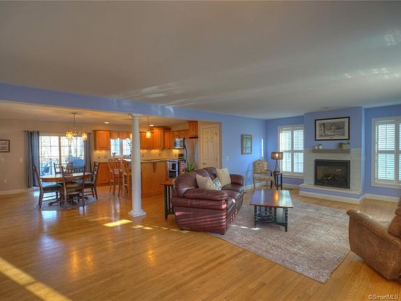 Plenty of space with this 4 bedroom, 2.5 bath Colonial! It has a covered front porch, 2,410 sf on 0.30 acre corner lot. Main floor offers a large open floor plan with an eat-in kitchen that has a gas range, center island with breakfast bar and dining area with slider leading to deck. Relax by the fireplace in its spacious living room, enjoy the formal dining room with French doors that also can be used as an office to work remotely from home, and has a convenient main level laundry room. Home features central air, hardwoods, and beautiful tall Thermopane windows. Upper level bedrooms and Master with walk-in closet and a full bath with double sinks. This exceptional Colonial has a full basement and attached 2 car garage with opener. Great subdivision with sidewalks for taking long walks. Mystic is a wonderful historic, picturesque, community with something for everyone. Just 9 minutes from downtown Mystic local shops, restaurants, Seaport and Aquarium, and a short drive to RI beaches. Close to major employers, Electric Boat, Pfizer, Hospitals, Naval Submarine Base, and two Casinos. It won't disappoint!