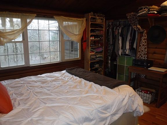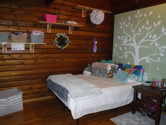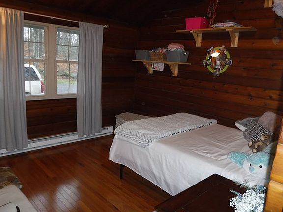 Charming log home with 3 car detached garage, tucked away at the end of Mayapple Lane.Spacious Great room with vaulted ceilings and stone fireplace with insert offering you the living, dining and kitchen areas. 3 bedrooms and 2 remodeled full baths, utility room/pantry just off the kitchen. Spacious sunroom leads to a large back porch. Pick your heat source, electric, wood, wood pellets. Detached Garage offers propane. Large yard Offers 1.08+/- acres plus additional Parcel offering 1.10+/- acres of land.Do not miss the common areas with a pond, trails, and woods to enjoy at Broad Horizons.