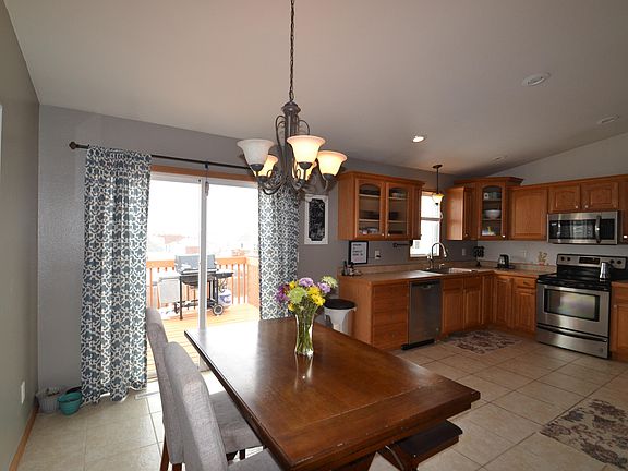 Fantastic location tucked away in a quiet cul-de-sac, this spacious, well-maintained walk-out ranch offers generous-sized rooms, vaulted ceilings, new tile flooring, tons of natural daylight, and neutral paint that make this home feel light & bright! Plus it's all situated on a huge fully fenced and landscaped yard. From the moment you step inside you will be impressed. The large foyer opens into a generous living room with lots of natural daylight and flows into a spacious dining room where you can step out onto a large deck and backyard. The kitchen has new ceramic tile flooring, new sink and faucet, and a new microwave, all capped off by plenty of beautiful cabinets and counter space. Two bedrooms and a full bath with new tile back-splash and new ceramic tiled floor finish the main floor. The walk-out basement has so much space to entertain! The spacious family room boasts a fireplace, built-in wet-bar with cabinets and tiled back-splash. There's also a 3/4 bath, two more spacious bedrooms, a laundry room with lots of cabinets, and additional storage to round out the basement. The 3-car garage is finished with a floor drain. This home has tons of space throughout, gorgeous perennials to brighten the yard and so much more than words can describe. Don't let this one slip you by! Contact a realtor today for a private showing.