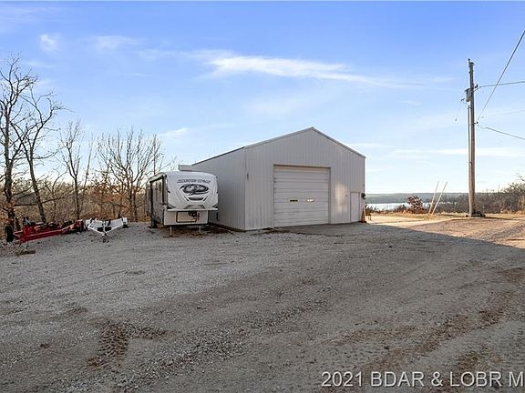 Have you dreamed of the ultimate man cave? Now could be the time. This shop has an incredible lake view for the perfect entertaining area to enjoy with family while watching the fireworks from the bluff top expanding over miles of shoreline. Here is your one-stop cantina + workshop, where you can pull up a seat anytime in-between projects and auto perfection. And if you don't actually use your garage for car storage and DIY repairs, even better! This garage features 30 amp, 50 amp, and two 110 amps that you can hook an RV up to, industrial lighting, well insulated, a bathroom, an additional utility sink, a 1,500 galloon septic holding tank, and 300 square feet upstairs that could be turned into a bedroom or used for storage. Closely located to the garage is also a private beach and private boat ramp for easy access to the lake. This is a unique opportunity to get a property here at Lake of the Ozarks, so make sure to take advantage of this today!