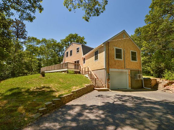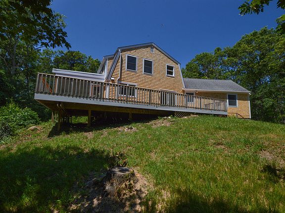 Nestled on a serene 1.88-acre lot in the desirable Lakewood Hills neighborhood, this 4-bedroom, 7 plus room home boasts a custom gambrel design, offers privacy and convenience. The first floor features a fireplaced living room, full bath, laundry/mud room, updated kitchen with granite countertops, stainless steel appliances, and hardwood floors throughout. Choose between a first-floor or second-floor master bedroom with fireplace, each with updated baths. Upstairs find two additional bedrooms, and another full bath. The finished basement perfect for a playroom or family room and there's room for a in home office. Outside, relax on the wrap-around deck or the large screened porch offering total privacy. Additional amenities include air conditioning and a one-car garage. Conveniently located near schools, shopping, and beaches, with easy access to highways, this home is a must-see.
