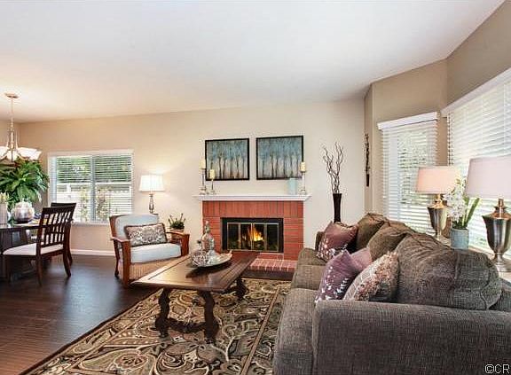 Beautifully upgraded 3-bedroom, 2.5-bath, 1,411 sq. ft. 2-car-garage TOWNHOME in desirable Northwood Timberline. Located in a quaint and beautifully maintained community, this spacious home is the largest model featuring bay windows, vaulted ceilings, fireplace, new decorator paint, new carpeting, new high-end distressed dark wood laminate flooring, new lighting & fixtures, new white 2 custom 3-Day Blinds Remodeled kitchen has expansive center island with extensive storage and breakfast counter and adjoining family room that opens to private covered patio/courtyard leading to your direct access 2-car garage. This end-unit features a large grassy, landscaped side yard that distinguishes it from other 2 or 3 bedroom models and allows you to enjoy watching your kids or pets play from your kitchen window! This is the home and lifestyle youve been longing for! This pristine Irvine community is known for its attractive townhomes, low HOA dues, low taxes, no mello roos, and being close to just about everywhere you want to be. Top-rated schools, Heritage Park and Heritage Plaza with its shopping and local eateries are just are stroll away. This is certainly Orange County Living at its best! CENTER OF THE TRACT - NO STREET NOISE.