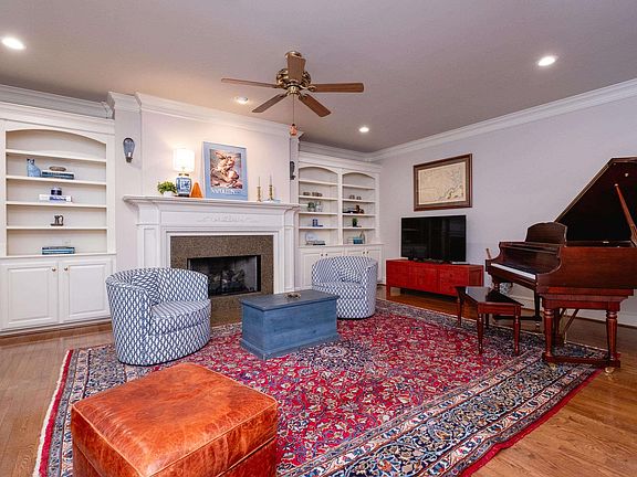This custom-built, single-level brick home offers 3 bedrooms and 2 bathrooms, designed with comfort and quality in mind. The formal living room boasts a cozy fireplace and elegant built-in bookshelves, while the formal dining room provides a beautiful setting for gatherings. The spacious, eat-in kitchen is perfect for casual dining. Gorgeous hardwood floors extend through the living areas, while plantation shutters throughout the home enhance its warmth and sophistication. The bedrooms are privately tucked away from the main living areas, ensuring privacy, peace and quiet. A rear-loading two car garage offers extra storage. Agents please see confidential remarks.