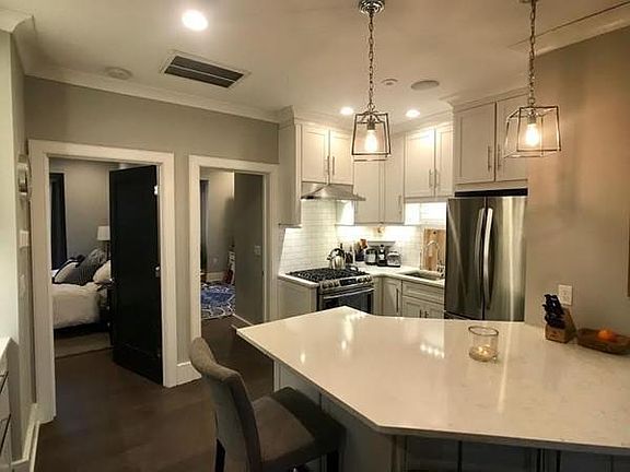 Beautifully fully furnished penthouse 2 bedroom, second bedroom presently used as a study. Entire gut renovation. This unit has an open concept chef's kitchen with gas cooking leading to the living room with sleeper sofa. High ceilings, decorative fireplace, premium multi zoned surround sound with blue tooth capabilities throughout. Central A/C, in unit W/D. Large master bedroom with kind sized bed, plenty of closet space. Spiral staircase leads to the units private roof deck. Gas grill, open entertaining area, dry bar and water hook up. Panoramic city views. Heat/hot water and gas are included in the rent.