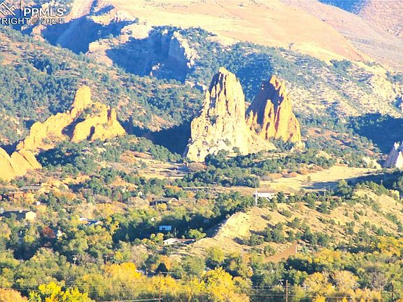 - View description: City, Mountain(s), View of Pikes Peak, View of Rock Formations