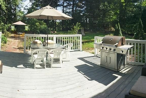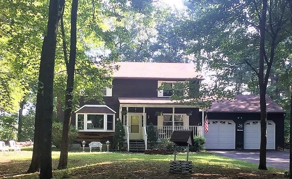 Lucky for you, this lovingly cared for home, tucked into this quintessential W. New England farm town, is now being offered by the original owner!! Natural light throughout the open concept living-room featuring a Bay window (2016), wood stove and truly stunning Cherry flooring throughout LR, DR and BR!! Open DR/K with peninsula and plenty of room for your XL dining table! Head out the lovely French doors to your outdoor oasis beginning with the ample deck (2003) leading to your stone patio and firepit- all of which are privatized by nature/outlined by adult trees! Convenience at its best, 1st fl incl: Bath w shower, updated marble counter/maple vanity; Interior access to a massive garage (2003) door/stairs (2016); Bonus rm/office space; Closet and Laundry! Head upstairs to the 4 bright and cheerful bedrooms w loads of closet space- and a full bath as master or shared! MassSave- thermostats,1st fl lighting and attic insulation (2016). Septic-2007 FIRST SHOWING OPEN HOUSE 9/28 4:30-6:00