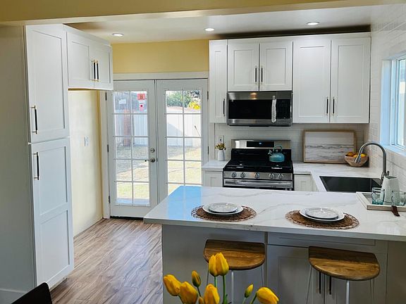 The bedrooms. With wall to wall closets. Serene sanctuaries for relaxation. Showcases chic bathroom. And the huge backyard. A private escape perfect for entertaining or building a new ADU. This home has a 10x20 Storage Room. The plumbing was recently replaced throughout the house. New hardwood floors and upgraded kitchen. Double doors opening to a huge yard waiting for you to design your new backyard oasis.