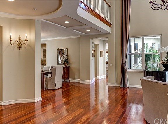 A dream estate situated on a tree lined interior lot of the exclusive gated enclave of RoseGate in Northwood Pointe. This expansive, yet elegant, Taylor Woodrow home features designer touches starting with soaring vaulted ceilings upon entry and showcasing 5 bedrooms, 4 full baths, 2 half baths - with the possibility of configuring up to 9 bedrooms. Beyond the dramatic formal living and dining spaces, the gourmet entertainer's kitchen is equipped with a 6 burner Viking stove, wine fridge, high-end cabinetry, a large center Island with vegetable sink and a second garbage disposal, as well as a breakfast nook opening to the family room. An office and a first floor bedroom, which has a door to the pool patio from the en-suite bath, complete the downstairs. Elegant front and private back stair cases lead to the spacious upstairs which begins with a Master Suite that overlooks the pool yard and features a large sitting area. The resort style master bath has a jetted soaking tub with separate vanities and closet spaces. Adjacent, and overlooking the pool, is the large bonus room perfect for a home theater or game room. A large loft, laundry room and 3 additional en-suite bedrooms complete the upstairs. With great privacy the resort style backyard has a pool and spa, a built-in bbq island, and a pergola covered patio. Residents enjoy access to multiple parks, trails, pools, sport courts, as well as access to some of Irvine's best Blue Ribbon "10" Schools.