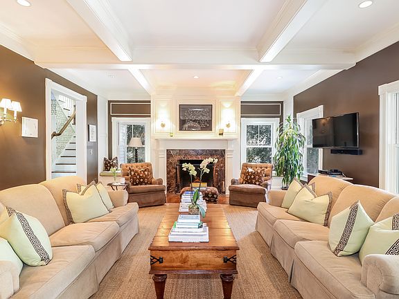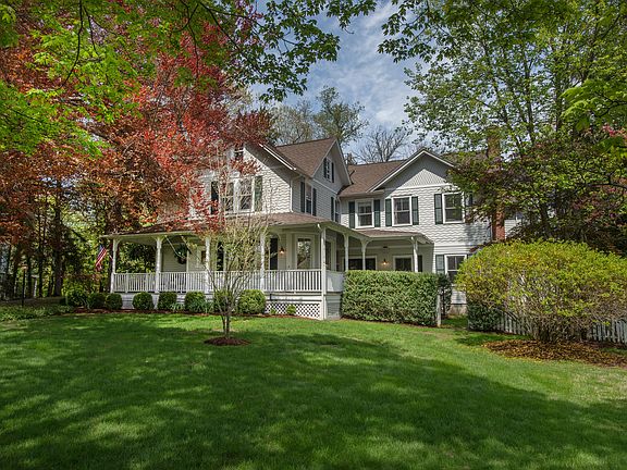 Set far back from street, this sun drenched Victorian home is absolute perfection. Renovated & expanded in 2006, this home features 9 ft+ ceilings w/open floor plan & spacious rooms - perfect for both living and entertaining. Fantastic flow on 1st floor w/Formal living room w/bay window which opens to Formal dining room w/built-in. Updated Eat-in-Kitchen w/new SS appliances, granite countertops, custom Wood cabinetry, Island & separate dining area. Great Family room w/coffered ceilings, marble fireplace, wet bar w/beverage refrigerator & French doors leading to wrap around porch. First floor also has small office area w/built-ins, powder room, laundry room, mudroom w/built-ins, as well as front & Back staircases. Second floor w/3 good sized kids bedrooms, 2 full bathrooms & office with built-ins. En-suite MBR w/dressing room, vaulted ceilings, custom built-ins with desk and window seat, & walk in closet. Master bath w/steam shower, whirlpool tub & carrera marble double sink vanity. Oversized Rec/Play room with cathedral ceilings & en-suite 5th bedroom w/full bath. Plenty of storage & Attached 2 car garage. Professionally landscaped on .8 Acres w/mature plantings, wood deck & patio. Located directly across from Baker Park & Close to Noroton Heights and Darien downtown w/shops & restaurants. Perfect for commuters - close to highway & walking distance to Train station. Award winning Blue Ribbon Hindley elementary school.