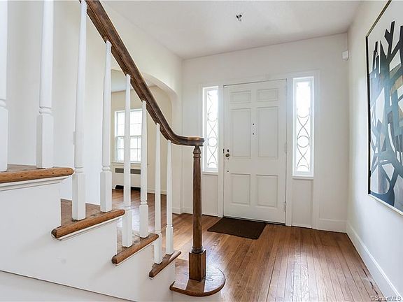 Large Colonial. Open living space, 2nd floor bedrooms and 3rd floor finished with additional bedrooms and a plumbed bath. Living Room has floor to ceiling brick fireplace with high ceilings. Hardwood floors throughout. Large yard with deck and 2 car garage under house.