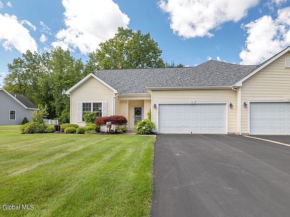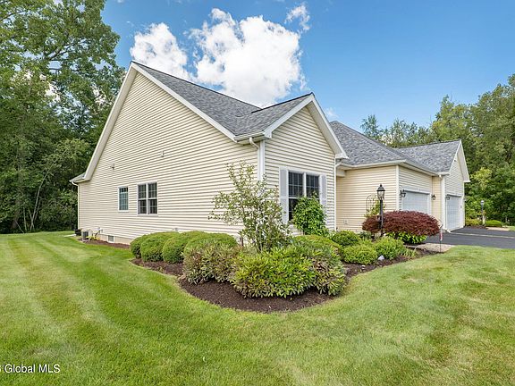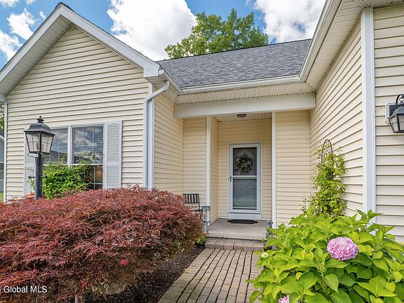 Multiple Offer Deadline 8/27 5pm Rare Opportunity in Niskayuna's Highly desired Humming Bird Manor! Immaculate one-floor unit with hardwood floors, cathedral ceiling in great room, and gas fireplace. Spacious Primary Bedroom suite features a custom well-appointed updated bathroom with separate shower and soaking tub (2021). Two sizable bedrooms share custom hall bathroom remodeled (2021). Updated kitchen with new cabinets and countertops provides great flow and easy entertaining. Giant two car garage will fit both your cars and all your toys! Enjoy morning coffee or afternoon drink on large deck facing woodland-bordered yard creating a private oasis. Roof was replaced 2021 with transferable warranty. Pristine grounds, HOA-managed community.