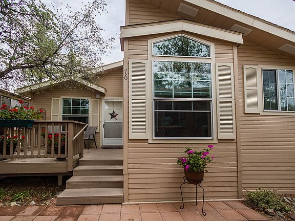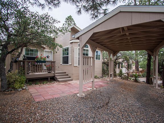 Your get away in the pines! Located in the beautiful setting of the 55+ age restricted community of Pine Lakes. 2002 Cavco, 1267 SQ.FT 2BR/2BA. This is a Lease Land community, you own the home but lease the land. Lot rent is $739/ month OR you can purchase the home and you can move to your location! Home is 2 x 6 construction Single Car Carport, Central Air & Heat, with Dining Room, Eat-in Kitchen, Laundry room, Front and Rear Decks. Skylights in kitchen and master bath, ceiling fans throughout, very open and bright living room with a lot of natural light. Located on the edge of the Prescott National Forest, you are in towering Ponderosa pines and nearby hiking trails yet only minutes away from downtown Prescott restaurants, shopping and medical care. Pine Lakes offers many amenities such as tennis, shuffleboard, billiards, ping pong, work-out area, library, craft area as well as many community events through out the year. RV storage is also available. If you want to be in the pines, at a low monthly cost, this is the place! Contact Pat: 928-600-4997