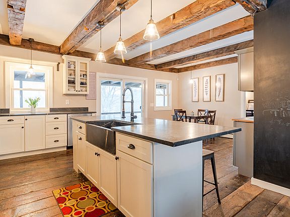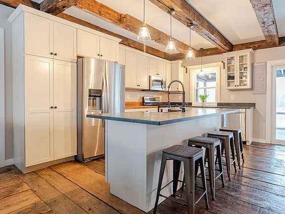 Personality plus! This modern farmhouse is an ode to classic New England style. Inside, the house is filled with unique special touches, showcasing period details: wide-plank hardwood floors, exposed beams, and a built ins. The kitchen features a timeless, white-and-wood design with soapstone countertops, stainless steel appliances and a large farmhouse sink. The bathrooms are updated with farm house flair and the perfect blend of old and new. Outside, enjoy a huge screened in porch perfect for watching the sun set over the in ground pool and private back yard with a welcoming fire pit.