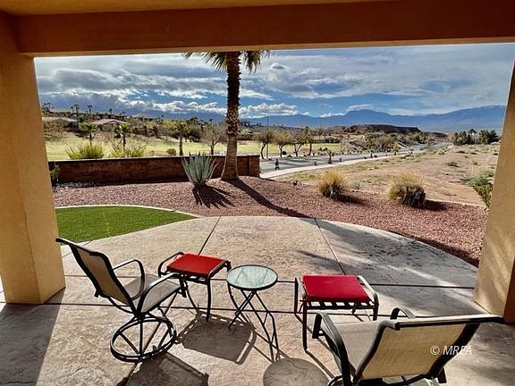 Beautiful Portobello Home With Golf Course views of the 1st fairway of the Canyon's. This property features: 3Bdr 2Bth 1619 sq ft of living space with an oversized lot for a pool or outdoor entertaining, This home has been nicely put together with marble floors in the entryway and bathrooms, Jetted tub in the main bathroom, ceiling fans throughout the home, soft water system, comes furnished, putting green in the backyard, Nice open kitchen with center granite island with ample windows for the Mesquite views, This property is also a 1 minute golf cart ride to the Oasis 36 hole golf course a must see.