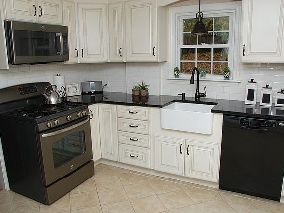Rare Colonial in an established residential area of 16 Acres! The kitchen has French Country cream cabinets with upgraded iron hardware. The countertops are sparkling black granite with a porcelain deep farmhouse sink and subway tile backsplash. The GE gas stove, matching microwave, Whirlpool refrigerator, and dishwasher are all included. A charming iron chandelier to remain in the dining room and original built in corner cabinets. Just off the dining room is a sunny 3 season porch and an exit to the huge private grassy tiered back yard. Entertaining is easy with 2 concrete patios. Come back into the house via a mud room big enough for all your stuff! The front door opens into a large living room with a painted brick working fireplace. All hardwood floors with the exception of wood laminate flooring in the full finished basement, mudroom and sunroom. 7 closets upstairs to hide all your clothes and shoes! Upstairs bathroom has super shiny cream tile floor. This house won't last!