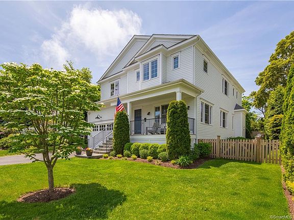 Inspiring contemporary colonial in an enviable walk to town, Fairfield Beach area location. Turnkey ready with wonderful updates and easy flexibility for modern convenience on each floor. The open plan with sun filled rooms radiates from a gracious central hallway that leads to the private patio and verdant yard. Beautiful chef's kitchen + family room with unique design details: teak island and rough hewn fireplace mantel over gas fireplace. Sunny living room can easily function as a home office with a wall of custom bookcases, cabinets and porch views. Spacious dining room with beautiful millwork can accommodate large gatherings of family and friends. Coffered ceiling Master suite and 3 roomy additional bedrooms (one with a bath en suite, and the others sharing a Jack and Jill) allow everyone to have their own space and ready work stations for those all important zoom calls! Fully fenced backyard with bluestone patio and lawn for lounging + entertaining. Surrounding stone wall with built-in grill, outdoor refrigerator and separate gas fire pit area. Best of all is the breezy walk to almost everything - shops, train, restaurants and beach. Trust me, this is a quiet neighborhood gem. You'll never ever run out of guacamole or chocolate chip cookies because the best local purveyors are just blocks away! Actually, you may never leave the comfort of the rockers on your front porch.