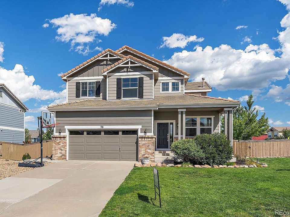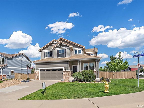 Stunning Castlewood Ranch 2story located on a corner lot. This home is turn-key and ready for you to move in. Walking to the front door you will notice your covered front porch perfect for evening sunsets. Come inside where soaring vaulted ceilings greet you in a great flex space. The main floor has a nice open concept, kitchen features newer s/s appliances, granite counter tops and opens to the eat-in kitchen space/family room with gas fireplace, perfect for entertaining. Four bedrooms upstairs make this the perfect family home, featuring three large secondary rooms and primary bedroom with 5-piece bathroom and a walk-in closet. The basement is fully finished with a perfect media room, large bedroom, office and a 3/4 bathroom, the ideal space for any guest. The large private backyard is a blank slate with endless options. Home is within walking distance to Flagstone elementary school and Mesa middle school. This is the perfect family home, schedule your showings today!!
