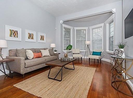 This beautiful 1,500 sf, 3 bdrm, 1 bath condo with 11 ceilings offers the convenience of urban living in a rapidly rejuvenating neighborhood near downtown Boston. Located in a renovated Victorian, large bay windows in both the oversized living room & master bedroom brings in lots of sun. Two more generous bdrms provide ample space for a growing family or a couples activities. Another room off the kitchen is perfect as a den/home office or dining room. Large kitchen accommodates a dining area along with an island for informal eating. All counter tops are granite and the appliances stainless. Gleaming dark hardwood floors throughout provide added warmth to a welcoming home. Large deck adjacent to the kitchen provides easy means to outdoor activities and is a few steps from a dedicated parking space. Direct entry to the basement provides effortless access to utilities, washer and dryer and a very large, secure, dedicated storage area. OH: 4/14, 5:30-7; 4/15, 12:30-2; 4/16, 1-2:30.