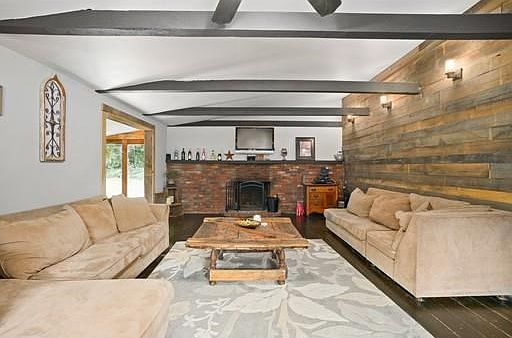 - Liv Dscrp: Cable Hookup, Fireplace, Flooring - Hardwood, French Doors, Ceiling - Beamed