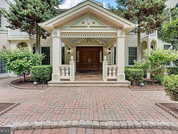 At the end of cul-de-sac, the gold painted finial iron gates open automatically to welcome you! This 3-level custom-built colonial estate with distinct Mediterranean influences is one of a kind architectural masterpiece, offering over 8,000 sq. feet of living and entertaining accommodations. Nestled in the prestigious Princeton Ridge enclave, only minutes away from Palmer Square, Princeton University, and top private schools, this extraordinary home, boasting 5 large en suit bedrooms & 6 full/2 half baths, has been impeccably maintained by its original owner. Privately situated on over an acre of scenic and beautifully landscaped property (adjacent to over 25 acres of preserved woods), with paved circular driveway and a granite fountain. This magnificent Persian inspired manor requires surprisingly low maintenance. Archways, French doors, extensive custom crown moldings, hardwood floors, granite countertops, soaring ceilings, and large skylights are features of the property. A courtyard-like Great Room with a 24-feet vaulted ceiling, gas fireplace, huge formal dining room with exquisite molding and chair railing. A unique solarium with structural glass floor overlooking the swimming pool below and enjoying panoramic seasonal vistas from three sides with skylights. An oversized 3-car garage with ample shelving, mud room, pet room, and a tiled wraparound balcony with awning wrapping the awe-inspiring kitchen. Upper level is “hall of rooms”. The expansive and luxurious master suite and 3 additional large en suite bedrooms with high vaulted ceilings, walk-in closets, balconies, 2 with fireplace and 2 whirlpools. A large solarium (potentially a bedroom) with a wet bar, balcony and stunning views of the garden completes this level. The finished walk out lower level is the ‘club house’ with an in-law en suite, kitchen, paver covered patio, family room, game room, office, sauna, an additional full bath, changing room and storage room. Then you are steps away from the indoor/outdoor, year-round, heated low maintenance saltwater pool with whirlpool and a huge paver patio with awning and exotic bushes surrounding. This level is recreational and entertainment paradise. Other highlights include fresh paints, 2x6 and stucco construction with lower level built with over 9 feet of poured concrete, main and upper floors with 9, 14 and 25 feet ceilings, Pella windows and doors throughout, 21 skylights, granite in all bathrooms with brass hardware, hardwood floors throughout, luxurious crown molding and sophisticated medallions, 6 gas fireplaces, several balconies and stone patios, abundance of storage spaces, upgraded 6 zone heating and cooling systems, 400-amp electric system, and 2 large water heaters, one only 2 year old. Other amenities include recessed lighting throughout, chandlers, remote-operating fans/lights, LED bulbs throughout, central vacuum, security, intercom and media audio systems throughout, an exclusive indoor/outdoor saltwater low maintenance swimming pool that doesn't need chlorine, gazebo, pergola, swing set, sprinkler system throughout, multiple stone patios, paved walkways and landscape lighting around the home, sod-lawned yards and rock gardens of exotic trees and bushes that bloom in different seasons. This spectacular manor is perfect 'staycation' for entire family.