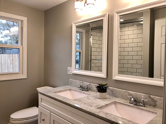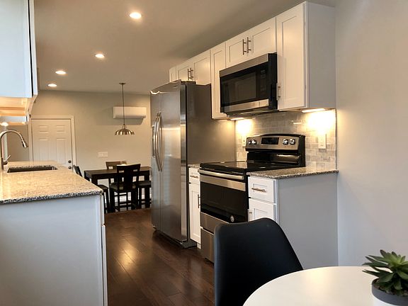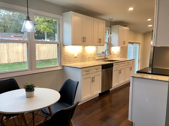 Even better than new construction, this stunning Ranch has been completely renovated from sub-floor and hardwood to roof and windows and a high energy saver HVAC 5 zone mini splits. The updates go on and will be posted at the open house. This home offers contemporary style and modern comfort throughout single-floor living. Start with the picture perfect exterior featuring shutters and an attached garage. The front door opens to a charming living room with over-sized window and wood floors that continue throughout the house, including to all 3 bedrooms. The bathroom has been updated with a tiled bath and double vanity. The chic kitchen dazzles, with on-trend features like stainless steel appliances, white cabinets, marble back splash and dining area. For larger gatherings, head to the lovely dining room lit not just by French doors to the front of the house, but the large slider to the fenced-in backyard.