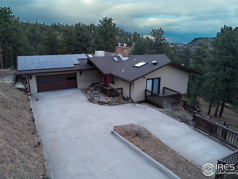 Welcome to Fox Hollow, set on just over an acre in the sought-after Pine Brook Hills community. Inspired by its namesake statue and regular fox sightings, this property appeals to those who value accessibility, intelligent comfort, and peaceful solitude. Offering a perfect blend of modern design, breathtaking views, and convenience-just minutes from downtown Boulder-it feels like a private mountain retreat.Updated finishes complement the serene foothills setting, surrounded by mature evergreens, native landscaping, and sweeping valley, plains, and North Boulder views. Wildlife including foxes, deer, turkey, and birds of prey visit often, creating a true nature-rich living experience with easy access to the city.The light-filled main level features an open layout with vaulted ceilings, skylights, a stone fireplace, and modern updates that preserve the home's mountain character. Living and dining areas flow into the remodeled kitchen, creating a warm and functional space for everyday living and entertaining.The primary suite offers a remodeled 3/4 bath and walkout access to the upper deck. The main level also includes another bedroom. The refreshed walk-out lower level adds flexibility with two additional bedrooms-one with valley and plains views-and a large family/rec room with a fireplace.Outdoor living shines with two decks totaling roughly 1,000 sq ft. The lower deck is screened, while the upper deck features a private hot tub off the primary suite. The sloping, partly fenced lot offers classic mountain living with county-maintained roads. Additional highlights include an attached 2-car garage, extra parking by the lower entrance, updated systems, efficient baseboard hot-water heat, paid-off solar panels, and inclusion in the Pine Brook Hills water district. Recently remodeled and move-in ready, Fox Hollow is a rare opportunity to enjoy modern comfort in a stunning Boulder foothills setting.