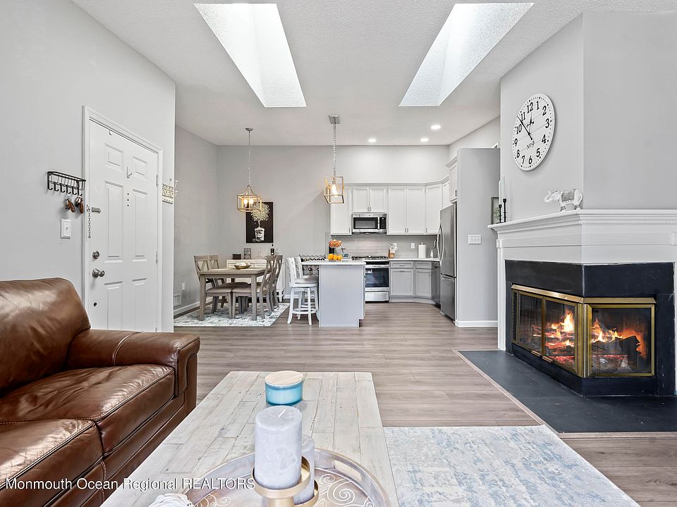 *LOVE AT FIRST SIGHT!* Stunning upper level newly remodeled condo! Brand new kitchen completely open to Living Room and Dining Room! New cabinetry, quartz countertops, new stainless steel appliances, large center island, and a vaulted ceiling with skylights. Fresh neutral paint throughout. Master Bedroom features a deep walk-in closet plus a second closet AND a beautiful view of a private wooded area. Both bathrooms are fully remodeled with quality fixtures and just the right amount of bling. Laundry room with new washer and dryer. Balcony overlooks the woods and quiet lot. Picturesque Society Hill features a pool, clubhouse, tennis courts and playground. Close to beach, Garden State Parkway, train to NYC, many shopping & dining options