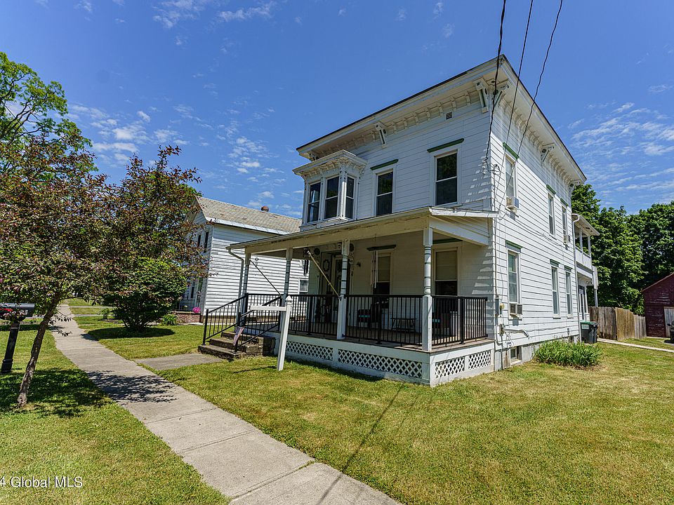 Open House 7/21, 1-3 * The perfect opportunity to live in the village of Schaghticoke - close proximity to the school & Main St. Over 2200sf of living space featuring 4 bedrooms & 2.5 bathrooms providing plenty of room for everyone. Lots of updates including radiant floors in the kitchen & under the slate floors in the foyer, new pellet stove (2023), cherry & oak hardwoods, huge primary bedroom closet (or 4th bed), & 2nd floor laundry. The character hasn't been removed as there are still tin ceilings in some rooms, crown molding & exterior wood corbels. The 27' above ground pool with new liner & cartridge pump/filter (2023) w/pool shed & piped for pool heater; various pool accessories will stay. The barn/garage is wired for a wood shop & has a big loft. This one is FHA/VA/USDA ready!