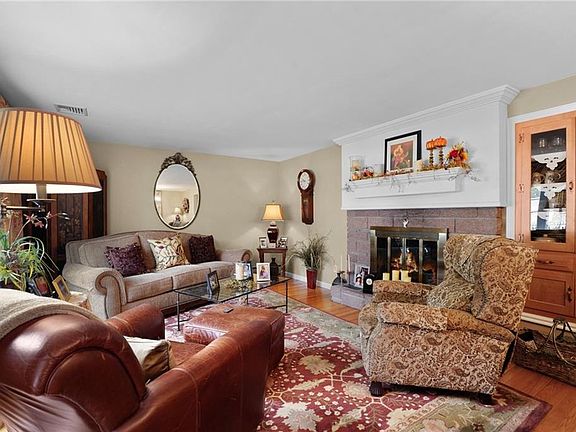 Fabulous custom ranch with 3 beds, 2 full baths, 2 fireplaces and a two-car garage. Homeowners pride shows throughout! Inviting sun filled living and dining area with bow window and a cozy fireplace with built-in cabinets. Nice, updated kitchen with granite counters and stainless-steel appliances. Hardwoods and central air throughout. 3 good size bedrooms and an updated bathroom completes the first floor. Make your way to the walkout lower level and you'll be pleasantly surprised by the spacious family room with fireplace, kitchenette, bar area and full bath. Possible in-law/guest suite. 2 car garage. Nice yard with sprinklers and fieldstone walls. Truly a must-see home!