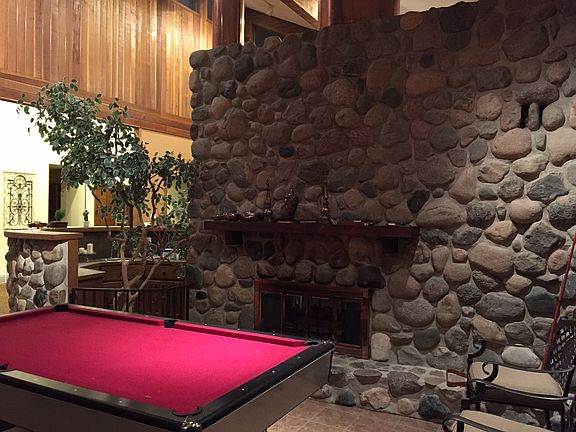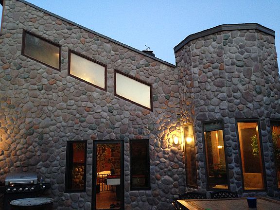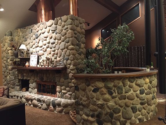 - Exterior features: Stone, Wood