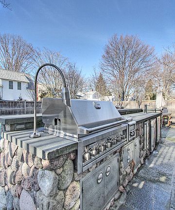 NEWER, SIGNIFICANT STONE & SHINGLE, CUSTOM HOME WITH GORGEOUS OPEN FLOOR PLAN. FEMA COMPLIANT! Outstanding level property. Substantial construction w/ designer input including 10' + ceilings on 1st/2nd floors, wood roof. Kit/DR/GR all open with views of Fireplace. Artistic mix of rustic/modern: exposed beams, vaulted ceilings, built-ins, specialty stone tops, floor, paint finishes. Fully equipped Kitchen looks over massive island/bar to dining and great room/fplc. POOL, OUTDOOR FULLY EQUIPPED KITCHEN, HOT TUB, OUTDOOR SHOWER, W/C. Master Suite is pure indulgence w/ vaulted- ceilings, fireplace, built-ins, spa-like bath and huge fin WIC. Baths ensuite or J/J. Plenty of storage