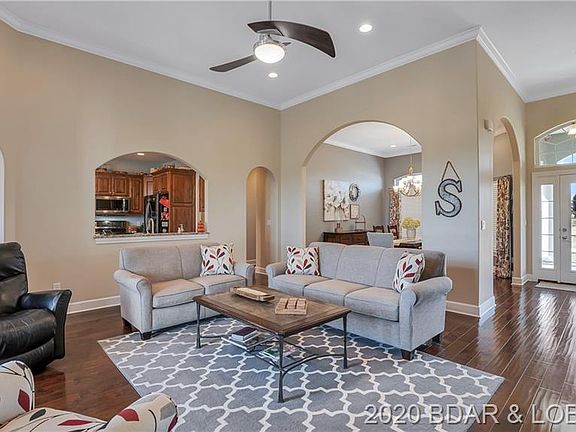 Gorgeous custom built home in fantastic neighborhood with community pool and convenient access to both Camdenton and Lebanon. The beautiful front porch welcomes you into this open concept home with crown molding and hardwood floors throughout. The kitchen boasts granite countertops, stainless steel appliances and a large pantry. The abundance of windows allows you to enjoy the manicured, flat yard. The oversized, climate controlled garage even includes a storm shelter. This is the complete package.