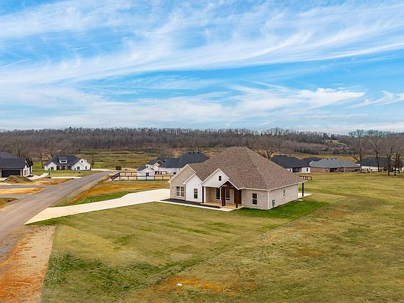 Custom built home that would make the perfect home for you. Situated at the top of the hill to take advantage of the amazing views. The sunsets from the back porch are beautiful! The living room is large with an impressive brick fireplace and vaulted ceiling. The kitchen has upgraded Kitchen Aid appliances. Enjoy the window over the sink that looks out over the porch and expanded patio. Large pantry just off the kitchen. The primary bedroom is spacious and also has those pretty views from the windows. Double vanities in the primary bath with a private powder room. The closet was designed for functionality and has room to put in a safe. An office is located near the primary bedroom. Guest bedrooms are separate from the primary bedroom. You will appreciate the large windows in the living room and dining room. Built in seating in the dining room. Porches on both the front and the back. The back porch is oversized and has an extended patio perfect for entertaining. There is even an area of concrete with a faucet on the side of the house meant for bathing your dogs. Beautiful home and beautiful views here!!