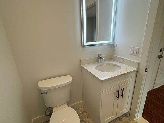 Exclusive penthouse unit with spacious outdoor terrace. This newly built 1 bedroom, 1.1 bath, modern unit is conveniently located on Ridge Road in North Arlington in newer elevator building. Unit features plentiful closet space, powder room, in unit washer-dryer, makeup mirrors, heated floors and double vanity in ensuite primary bath, quartz counters, stainless steel appliances, dishwasher, floor to ceiling windows and gorgeous 5th floor views from spacious terrace. Also has two zone heating and cooling, recessed lights and luxury vinyl floors throughout. Building has a 24 hour cardio room. No monthly amenity fee. Rent includes one covered assigned parking space ($125/month value). Pets under 40lb welcome with $85/month pet rent. Application fee is $195 for up to 2 applicants. All occupants must have credit score of 700+ and total household income should be 3x monthly rent. Tenant pays water, electric and cable/internet.
