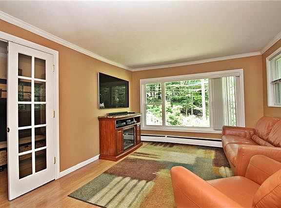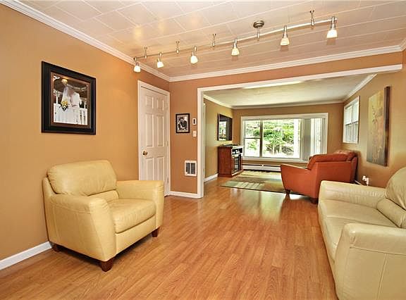 This Meticulously Maintained and Completely Move in Ready home will truly take your breath away! With over 1200 SF of gorgeous living space, here you will find everything you need and more. This delightful one level ranch features a desirable open floor plan. Open the door to a classy entry-way that leads to a huge living room and dining room space with uninterrupted flow. Next experience a spacious, modern eat-in kitchen with 2 sets of sliding glass doors, one to an over-sized deck, great for entertaining, and the other to a private patio perfect for your bistro set to enjoy the peace and quiet. Come back inside and find an impressive master bedroom with room for a king bed and all of your furniture, a charming 2nd bedroom, an updated roomy bathroom, and a versatile den. The outskirts are enchanting with beauty at each layer of this private and graceful corner property. Taxes with Basic Star only $7,238.00! You do not miss this one!