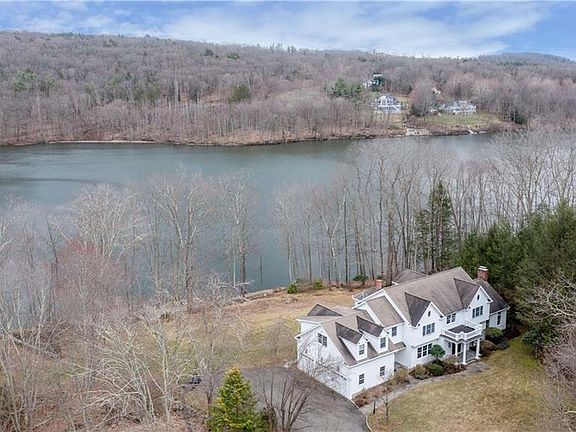 Vacation at home in this stunning lakefront retreat situated on 2.49 acres with over 400 feet of frontage on peaceful Lake Lillinonah. Private dock for boating or swimming and an expansive level yard. Enjoy year-round lake activities including ice skating, fishing and gorgeous leaf peeping, right from your own back yard or simply relax on the hammock or stone patios gazing at the water. Inside a stunning, sweeping staircase greets you as you enter this stylish 6000 sqft home. Beautiful craftsmanship and attention to detail throughout with panoramic lake views from most rooms. The main level showcases a bright and airy kitchen with huge center island for entertaining, as well as a cozy breakfast nook and sunroom, all overlooking the back patio and lake. Great Room with vaulted ceiling and fireplace, office, formal dining and living rooms, plus laundry room and separate entrance leading to the three-car garage. The upper level offers a spacious master suite with cathedral ceiling, four walk-in closets and master bath with dual vanities and jetted tub. Room for all your family and guests with three additional large bedrooms and two full baths. The lower level has limitless potential and includes a fireplace and full bath, perfect as a home theater or gym. Beautifully maintained inside and out with a new low-maintenance composite dock. Situated privately down a gated driveway in a quiet neighborhood, yet only 5 minutes to ample shopping and restaurants and just 90 minutes to NYC.