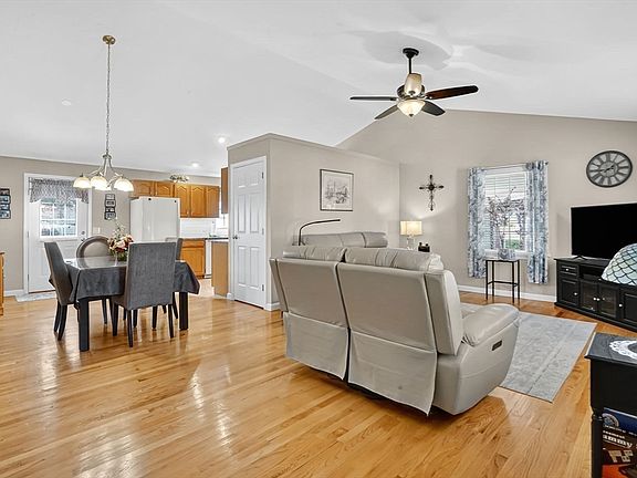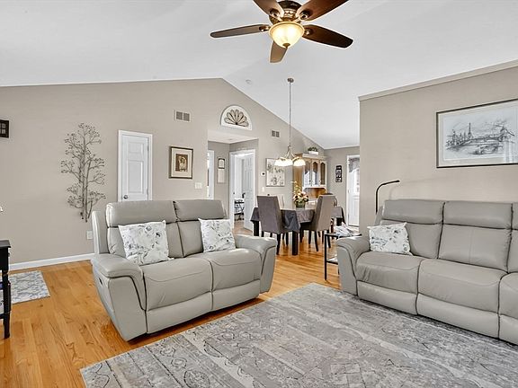 Welcome to effortless living in Rosewood Estates, Southwick’s premier 55+ community. This beautifully maintained end-unit condo offers the ease of single-level living paired with a bright, open-concept design. Vaulted ceilings and abundant natural light enhance the spacious living and dining areas, seamlessly connected to an updated kitchen with matte granite countertops and stylish backsplash—ideal for both daily living and entertaining. Gleaming hardwood floors, a refreshed bathroom, and convenient first-floor laundry elevate comfort and functionality. Exit outside to a patio or enjoy the practicality of an oversized attached garage and expansive cedar closet. Move-in ready, this home blends tasteful updates with low-maintenance living. Seller updates include: on-demand water heater (2019), granite counters & backsplash (2019), interior paint (2021), gas stove (2021), concrete steps (2023), new bath vanity, lighting & paint (2023), and microwave (2025).