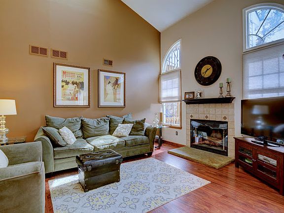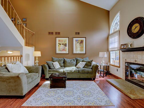 Located in the desirable SKYLINE VILLAGE community. This wonderful end unit features 2 story living room with fireplace, Master Suite, vaulted ceilings, skylights, walk-in closet, deck, garage & more! 2 Bedroom, 2 1/2 baths with finished basement central air and a community club house, outdoor pool and tennis courts round off this gorgeous unit.