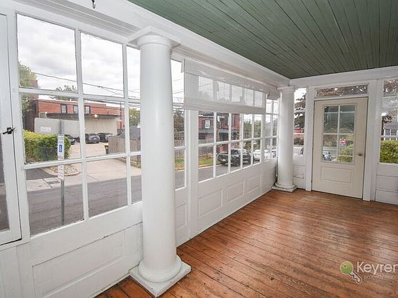 Enter through the enclosed front sunroom overlooking Hamilton Street. Inside, you'll find an inviting living room with hardwood floors that flow throughout the entire home. The open-concept first floor connects the living area, dining room, and kitchenideal for comfortable living and entertaining. The dining room features a dimmable chandelier and a convenient first-floor powder room.