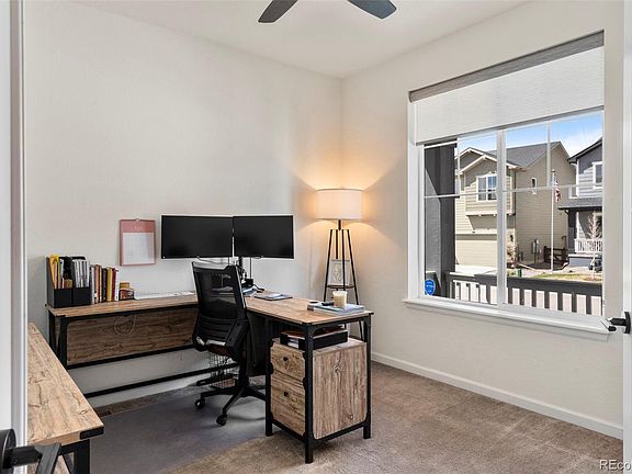 Welcome to the Vistas at Montaine! Welcome to your dream home in the heart of Castle Rock! This stunning two-story residence boasts luxurious living spaces, thoughtful design, and an array of modern amenities. As you step through the front door, you'll be greeted by an inviting open floor plan that seamlessly connects the living room, dining area, and kitchen. The focal point of the living room is the custom fireplace and mantle, perfect for cozy evenings with family and friends. The kitchen is a true delight, featuring a large eat-in island, stainless steel appliances, and ample cabinet space. Tall ceilings and large windows flood the space with natural light, creating a warm and welcoming atmosphere throughout. Convenience is key with a main-level office, ideal for those who work from home. The walk-in pantry and drop zone off the garage entry offer additional storage solutions to keep your home organized and clutter-free. Through the picturesque double sliding glass door step outside to the backyard oasis, perfect for outdoor entertaining or simply enjoying the serene surroundings. Additional features include automated window coverings on the main level, new light fixtures, and open space behind the house for added privacy and tranquility. Retreat to the spacious primary suite, complete with a five-piece bathroom featuring a soaking tub, an oversized shower, and individual vanities. Each of the four bedrooms boast large walk-in closets, providing plenty of storage space for all your belongings. The upper level is completed by the large laundry room with enough space for future cabinets and a countertop for folding. For those with future expansion in mind, the unfinished basement with rough-in plumbing provides endless possibilities for customization and growth. Don't miss your opportunity to own this impeccable property in one of Castle Rock's most coveted neighborhoods! Sellers UC on new house out of state and looking for a quick transaction.