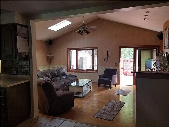 Beautiful 3 bedroom Ranch with many updates and very well taken care of on a quiet tree line street is waiting for you. Freshly painted interior. New driveway and sidewalk. Gleaming hardwood floors. Master bedroom with full bath, walk in closet and dbl. sided gas fireplace. Updated main floor bath. Cathedral ceilings in Great Room with skylights and glass sliders to deck leading to above ground pool and spacious deck. Partially finished basement with egress windows with a strong possibility of 2 more bedrooms and another full bath. Private backyard, fully fenced with oversized shed and fire pit. Lots of space in this house and could easily be for an in-law or teen suite. Dog kennel is included. Don't wait on this house that is packed with lots of extras.