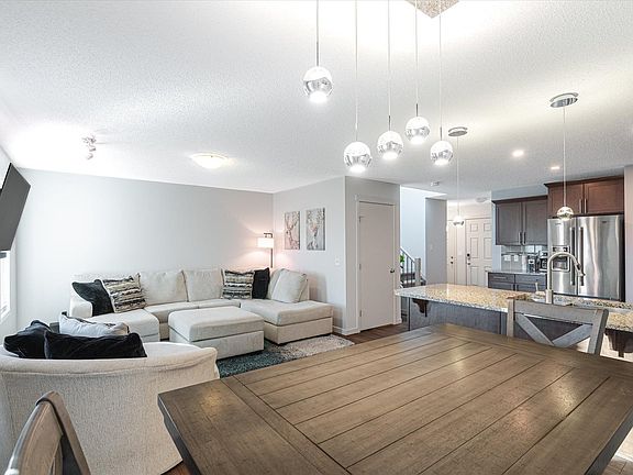 Welcome to the desirable and family-friendly community of Spruce Ridge. This immaculate half duplex offers the perfect blend of comfort, style, and practicality. Situated on a corner lot with ample yard space and no sidewalk to maintain, this home is ideal for families or those looking to downsize without compromising on quality. The main floor features an open-concept design with a spacious kitchen offering abundant cabinet and counter space, a bright dining area, and a welcoming living room with access to the beautifully landscaped backyard, complete with deck and patio. Upstairs, you’ll find a wide hallway with desk area, a luxurious primary suite with upgraded insulation, a backlit feature wall, large walk-in closet, and a 4pc ensuite. A convenient second-floor laundry room, oversized linen closet, 2 add'l bedrooms and 4pc bath complete this level. The unfinished basement is ready for your personal touch. Close to schools, shopping and the Tri-Leisure Centre, this community has so much to offer!