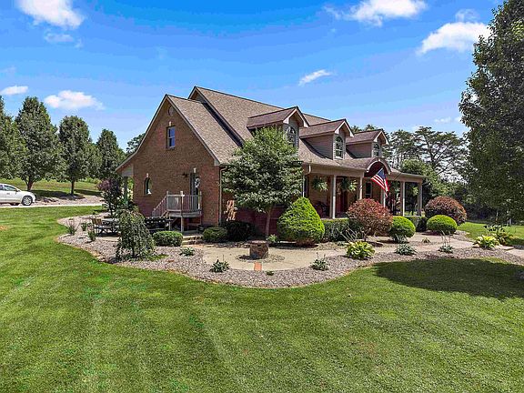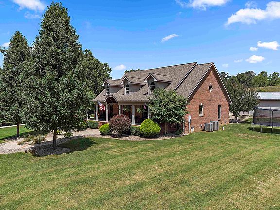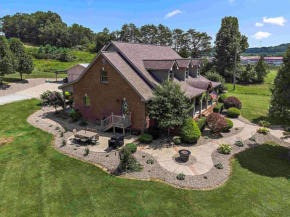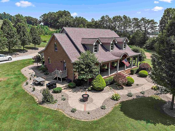 Indulge in the grandeur of this custom-built brick home, where stately elegance meets modern comfort. This 3-4 bedroom, 2.5 bath residence comes complete with a 2-car detached garage and an astonishing 4 acres of land, boasting your very own private pond. Whether you're envisioning a space to raise a family or to entertain friends, this property has it all.Upon arrival, the captivating grand staircase and vaulted ceilings welcome you into a world of sophistication. The main floor unveils a spacious living room with remarkable 20-foot ceilings, complemented by a breathtaking stone fireplace. A versatile flex room awaits, offering potential as an office or an extra bedroom if needed.The main floor also accommodates a convenient half bath and a primary suite featuring a tiled walk-in shower and an impressive three closets. The kitchen is a masterpiece, adorned with abundant cabinetry and expansive counter space. Granite countertops and stainless-steel appliances grace this culinary haven, alongside a breakfast nook perfect for casual dining. The adjacent dining room provides the ideal backdrop for cherished family gatherings. Upstairs, discover two generous bedrooms with vaulted ceilings and walk-in closets, connected by a charming "catwalk" that adds to the home's allure. The second bedroom offers an additional 8x13 room—a blank canvas primed for a game room or whatever your imagination desires. With ample room to explore and unleash your creativity, this home rests on an expansive 4-acre canvas, promising endless outdoor possibilities. Embrace the blend of luxury, comfort, and natural beauty that defines this remarkable property. Located near Grayson Lake State Park and Hidden Cove Golf Course.