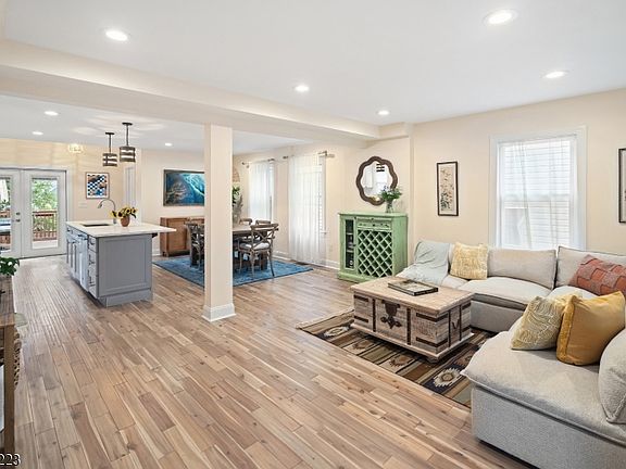 Step inside this charming 3-bedroom, 1.1-bath Colonial and feel right at home. A sunlit 3-season enclosed porch welcomes you, offering theperfect spot to enjoy your morning coffee. The open-concept main level flows effortlessly from the living room to the dining area to the beautifully updated kitchen, featuring hand-scraped solid acacia hardwood floors, custom trim, stainless steel appliances, a custom center island with seating, quartz countertops, porcelain backsplash, and recessed lighting. A conveniently located powder room completes the first floor. French doors with built-in blinds open to an expansive deck with custom solar lighting ideal for summer barbecues or quiet evenings under the stars. Upstairs, discover three invitingbedrooms with vaulted ceilings. The primary bedroom offers a double-door closet, while the updated main bath features a large Kohler tub/shower. Additional highlights include central air, direct vent gas furnace and a whole-house water filtration system. The spacious cedar wood fenced rear yard includes a concrete patio, providing plenty of room to relax or entertain. Ideally located close to the NYC bus stop, elementary school, Booth Park, Franklin Avenue with a supermarket, shops and restaurants, Clifton Commons with a 16-plex AMC movie theater, Target, Staples, Burlington, and a Barnes and Noble. This home blends comfort, character, and convenience in a sought-after neighborhood.